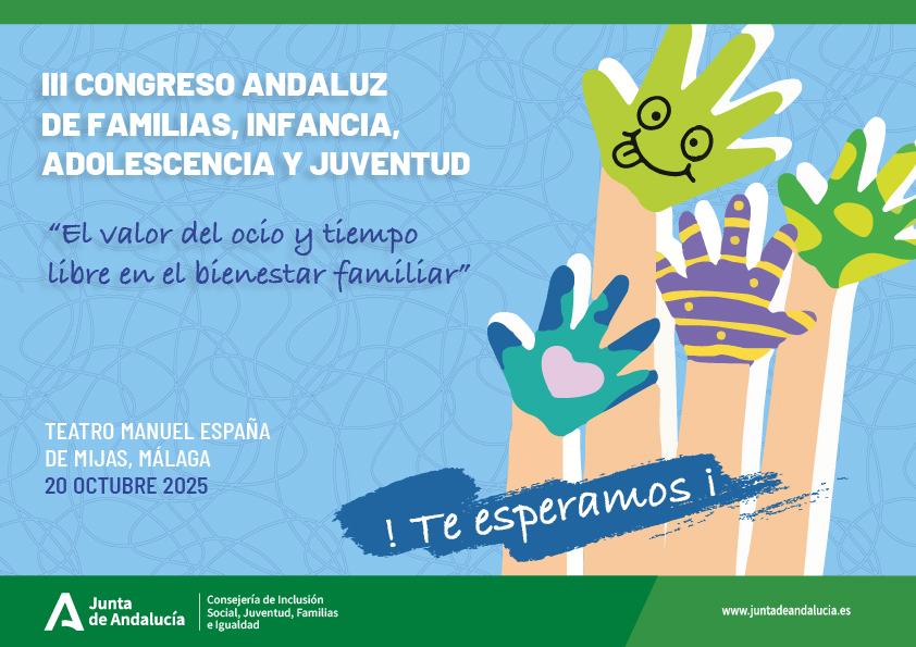 Este año celebramos en la ciudad de Mijas (Málaga) el III Congreso Andaluz de Familias, Infancia, Adolescencia y Juventud, un espacio en el que podremos compartir experiencias, reflexionar y dialogar sobre cómo el ocio y el tiempo libre influyen en el bienestar de las familias.